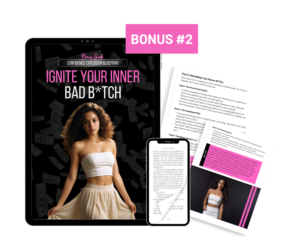 ALSO INCLUDED: 🎁 5 FREE BONUS GIFTS 🎁 that help you block his ass for good, skyrocket your self-worth, and become a certified man-eater (total value of $184)
